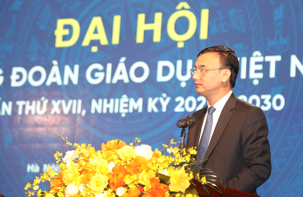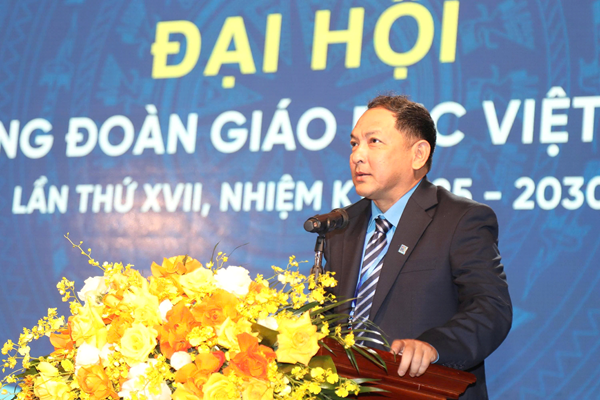 Đồng chí Nguyễn Xuân Hùng, Phó Chủ tịch Tổng LĐLĐ Việt Nam phát biểu tại Đại hội CĐGD Việt Nam khoá XVII