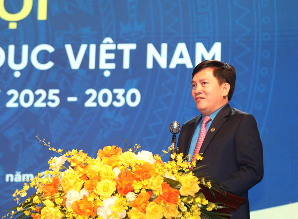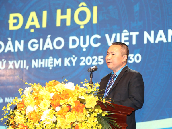 Đồng chí Nguyễn Ngọc Ân - Chủ tịch CĐGD Việt Nam phát biểu khai mạc tại Đại hội CĐGD Việt Nam lần thứ XVII, nhiệm kỳ 2025-2030