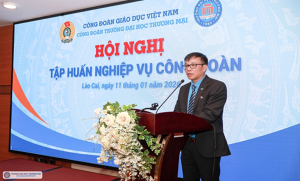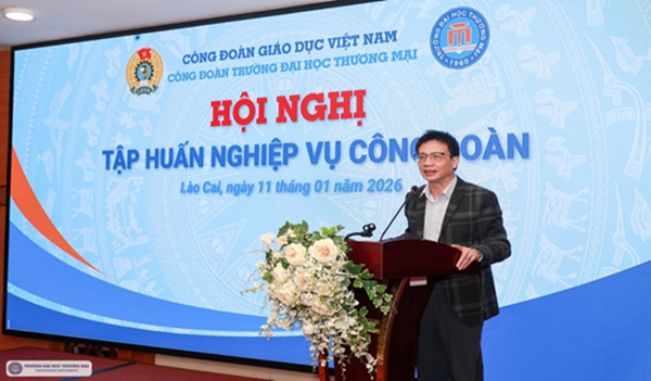 Thực hiện kế hoạch công tác năm học 2025 - 2026 về việc bồi dưỡng kiến thức nghiệp vụ cho cán bộ công đoàn cơ sở, ngày 11/01/2026, được sự đồng ý của Đảng ủy, Ban Giám hiệu, Công đoàn Trường Đại học Thương mại đã tổ chức Hội nghị tập huấn nghiệp vụ cán bộ công đoàn năm học 2025 - 2026 với chủ đề “Vai trò của Công đoàn trong phối hợp với chuyên môn để xây dựng môi trường làm việc hạnh phúc”.