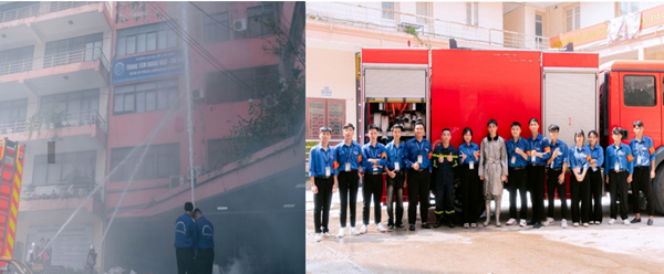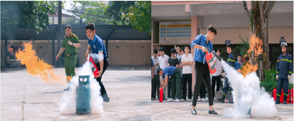 Dưới sự hướng dẫn của cán bộ Phòng Cảnh sát PCCC&CNCH, các học viên được trang bị kiến thức cơ bản, kỹ năng xử lý tình huống khi có cháy nổ, cách sử dụng phương tiện chữa cháy ban đầu, đồng thời được thực hành diễn tập tình huống giả định tại sảnh nhà C12 tầng. Các lực lượng phối hợp nhịp nhàng, thao tác nhanh, chính xác, thể hiện tinh thần chủ động - trách nhiệm - chuyên nghiệp trong xử lý sự cố.