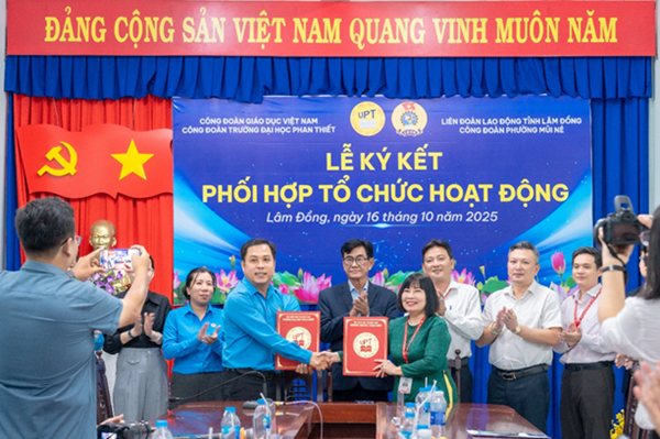 Trong không khí thi đua sôi nổi chào mừng Đại hội Công đoàn Trường Đại học Phan Thiết nhiệm kỳ 2025 – 2030 và Kỷ niệm 95 năm Ngày Phụ nữ Việt Nam (20/10/1930 – 20/10/2025), vào chiều ngày 16/10/2025, tại Trường Đại học Phan Thiết, Công đoàn Trường Đại học Phan Thiết và Công đoàn phường Mũi Né đã long trọng tổ chức Lễ ký kết phối hợp công tác, đánh dấu bước khởi đầu cho mối quan hệ hợp tác bền chặt giữa nhà trường và địa phương.
