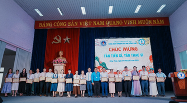 Lãnh đạo Công đoàn Trường Đại học Đồng Tháp chúc mừng các Tân Tiến sĩ và Tân Thạc sĩ năm 2025