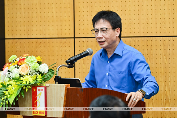 TS. Nguyễn Ngọc Ân - Chủ tịch Công đoàn Giáo dục Việt Nam - phát biểu chúc mừng, chia sẻ với Công đoàn Đại học Bách khoa Hà Nội