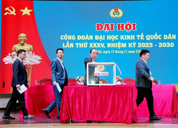 Căn cứ Kế hoạch số 90/KH-CĐGD ngày 09/9/2025 của Công đoàn Giáo dục Việt Nam về việc tổ chức đại hội công đoàn các cấp tiến tới Đại hội Công đoàn Việt Nam lần thứ XIV, nhiệm kỳ 2026-2031; Được sự đồng ý của Ban Thường vụ Công đoàn Giáo dục Việt Nam và Đảng ủy Đại học Kinh tế Quốc dân; Ngày 12/11/2025, Đại hội Công đoàn Đại học Kinh tế Quốc dân lần thứ XXXV, nhiệm kỳ 2025-2030 đã diễn ra trong bầu không khí dân chủ và đoàn kết.