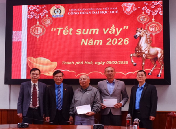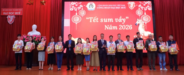 Thực hiện Kế hoạch số 383/KH-CĐ ngày 12/11/2025 của Công đoàn ĐH Huế về tổ chức các hoạt động chăm lo cho đoàn viên, viên chức, người lao động (VC, NLĐ) nhân dịp Tết Nguyên đán Bính Ngọ 2026, Công đoàn ĐH Huế đã tổ chức nhiều hoạt động ý nghĩa với phương châm“Tất cả đoàn viên, viên chức, người lao động đều có Tết, vui Tết”.