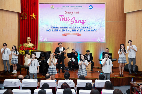 Phần kết của buổi lễ là một chương trình văn nghệ đặc biệt với tên gọi “Thu Sang” do tập thể giảng viên và sinh viên Khoa Nghệ thuật của Trường tổ chức và biểu diễn. Thầy cô và các em sinh viên đã mang đến chương trình những giai điệu du dương, trầm bổng từ những bản hòa tấu piano - violon - ghita, hòa quyện với những giọng ca bay bổng, truyền cảm, truyền tải thông điệp giàu ý nghĩa về người phụ nữ, về tình yêu và cái đẹp qua các ca khúc Việt Nam và ca khúc nhạc cổ điển của Nga, Ý. Chương trình văn nghệ khép lại bằng hợp ca “Sống như những đóa hoa” - như một lời khẳng định vẻ đẹp của nữ cán bộ công chức Trường Đại học Sư phạm Hà Nội - mỗi người chính là một bông hoa tươi thắm góp vào vườn hoa rực rỡ sắc màu của Nhà trường.