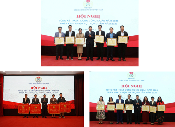 Hội nghị cũng là dịp biểu dương những tập thể và cá nhân có thành tích xuất sắc trong hoạt động công đoàn. Thay mặt Ban chấp hành Tổng LĐLĐ Việt Nam, Phó Chủ tịch Phan Văn Anh đã trao tặng Cờ thi đua cho 04 tập thể và Bằng khen cho 06 tập thể, 27 cá nhân tiêu biểu. CĐGD Việt Nam đã biểu dương, trao tặng Cờ thi đua cho 16 Tập thể và Bằng khen cho 98 tập thể, 241 cá nhân.