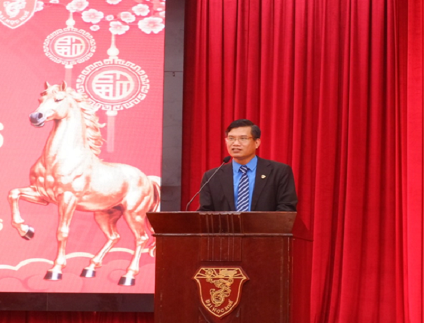 PGS.TS. Nguyễn Duân, UVBTV CĐGD Việt Nam, Chủ tịch Công đoàn ĐH Huế phát biểu tại Chương trình “Tết Sum vầy” năm 2026