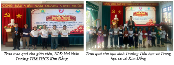 Tại Trường TH&THCS Kim Đồng và Trường Tiểu học Hương Hữu, Đại học Huế đã trao các suất quà đến giáo viên, người lao động mỗi suất quà trị giá 1.000.000 đồng và cho học sinh, mỗi suất quà trị giá 500.000 đồng.