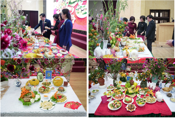 Điểm nhấn đặc sắc trong chương trình “Tết Sum vầy” năm 2026 chính là Hội thi “Nấu ăn mâm cơm ngày Tết” với sự tham gia sôi nổi của các tổ công đoàn trong Nhà trường được chia thành 10 đội. Các đội thi đã mang đến những mâm cơm truyền thống được chuẩn bị công phu, trình bày đẹp mắt, thể hiện sự khéo léo, sáng tạo và tinh thần gắn kết tập thể. Hội thi không chỉ góp phần tôn vinh nét đẹp văn hóa ẩm thực ngày Tết cổ truyền mà còn tạo sân chơi ý nghĩa, lan tỏa không khí vui tươi, ấm áp trong dịp xuân về. Ban Tổ chức đã trao 01 giải Nhất, 02 giải Nhì, 03 giải Ba và 04 giải Khuyến khích, ghi nhận sự nỗ lực và nhiệt tình của các đội tham gia.