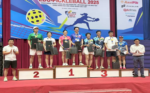 Niềm vui của thể thao Nhà trường như được nhân đôi khi không chỉ sôi nổi ở phong trào cơ sở, mà còn ghi dấu ấn đậm nét trên đấu trường quốc gia. Tại Giải Edu - Pickleball toàn quốc 2025 do Công đoàn Giáo dục Việt Nam tổ chức tại Đà Nẵng (từ 06-08/12/2025), đội tuyển của Nhà trường đã thi đấu đầy bản lĩnh và gặt hái thành công rực rỡ..