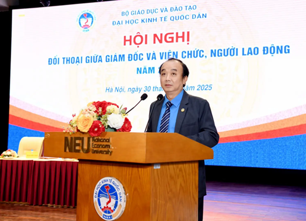 Giám đốc Đại học cho biết, trong bối cảnh Đảng và Nhà nước ban hành nhiều nghị quyết lớn mang tính chiến lược về đổi mới sáng tạo, khoa học - công nghệ, hội nhập quốc tế, phát triển kinh tế và giáo dục, Đại học Kinh tế Quốc dân đang đứng trước những yêu cầu đổi mới sâu sắc và toàn diện, từ quản trị đại học, nâng cao chất lượng đào tạo, đẩy mạnh nghiên cứu khoa học, đổi mới sáng tạo, chuyển đổi số đến hội nhập quốc tế và tuân thủ các chuẩn mực quản trị ngày càng cao. Trong tiến trình đó, đội ngũ viên chức và người lao động được xác định là nguồn lực trung tâm, giữ vai trò then chốt và mang tính quyết định đối với sự phát triển bền vững của Đại học.