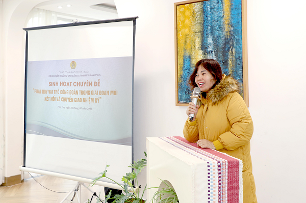 Thực hiện Kế hoạch số 06/KH-CĐCĐSPTW ngày 06 tháng 01 năm 2026 của Ban Chấp hành Công đoàn Trường Cao đẳng Sư phạm Trung ương về việc tổ chức sinh hoạt chuyên đề và tổng kết các hoạt động của Công đoàn năm 2025. Được sự đồng ý của Đảng ủy, Ban Giám hiệu Nhà trường ngày 23 tháng 01 năm 2026, Công đoàn Trường Cao đẳng Sư phạm Trung ương (CĐSPTW) tổ chức thành công buổi Sinh hoạt chuyên đề: “Phát huy vai trò của Công đoàn trong giai đoạn mới - Kết nối và chuyển giao nhiệm kỳ”.