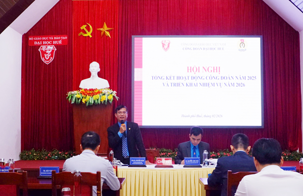 Sáng ngày 06/02/2026, Công đoàn Đại học Huế tổ chức Hội nghị Tổng kết hoạt động công đoàn năm 2025 và triển khai nhiệm vụ trọng tâm năm 2026.