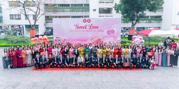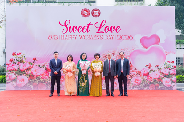 Chiều 06/3/2026, Công đoàn Trường Đại học Ngoại thương phối hợp với nhà trường, Đoàn TNCS Hồ Chí Minh và Văn phòng Đảng - Đoàn thể tổ chức Lễ kỷ niệm Ngày Quốc tế Phụ nữ 8/3 dành cho nữ viên chức, người lao động, học viên và sinh viên trong toàn trường. Không gian chương trình được trang trí rực rỡ với backdrop và các góc check-in mang đậm sắc màu tháng Ba, tạo nên bầu không khí vui tươi, ấm áp.