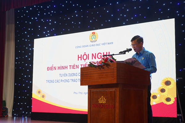 Phát biểu tại Hội nghị, đồng chí Thái Thu Xương - Phó Chủ tịch thường trực Tổng Liên đoàn Lao động Việt Nam ghi nhận những kết quả CĐGD Việt Nam đã đạt được trong chặng đường 05 năm đầy khó khăn từ những biến động của tình hình kinh tế - xã hội. CĐGD Việt Nam đã chỉ đạo, phát động, triển khai các phong trào thi một cách nghiêm túc, bài bản, sáng tạo và có nhiều đổi mới; luôn có cách thức cụ thể hóa, lựa chọn triển khai các nội dung thi đua phù hợp với từng nhóm đối tượng đặc thù của ngành, phù hợp với vị trí, vai trò, nhiệm vụ và điều kiện làm việc của đoàn viên, người lao động, đã giúp nâng cao hiệu quả các phong trào thi đua sát với nhiệm vụ chuyên môn và thiết thực. Phong trào thi đua “Lao động giỏi, Lao động sáng tạo”, “Nghiên cứu khoa học và chuyển giao công nghệ” đã tạo động lực, góp phần tạo ra 123.000 sáng kiến cải tiến kỹ thuật, giải pháp đổi mới phương pháp dạy học, ứng dụng công nghệ, chuyển đổi số… được áp dụng vào thực tiễn, mang lại hiệu quả rõ rệt. Trong giai đoạn tới, Phó Chủ tịch yêu cầu CĐGD Việt Nam cần xác định các phong trào thi đua là nhiệm vụ trung tâm của tổ chức công đoàn, tạo động lực để thực hiện thắng lợi mục tiêu đổi mới có tính đột phá trong giáo dục và đào tạo; tranh thủ sự đồng thuận, kết nối sức mạnh của cả hệ thống chính trị và xã hội, tạo thành nguồn lực tổng hợp để đưa phong trào phát triển toàn diện, bền vững. Phó Chủ tịch còn mong muốn CDGĐ Việt Nam đổi mới nội dung, phương thức tổ chức phong trào, gắn với các nhiệm vụ trọng tâm; phát hiện, tôn vinh, nhân rộng các điển hình tiên tiến, lan tỏa hình ảnh cao đẹp của nhà giáo.