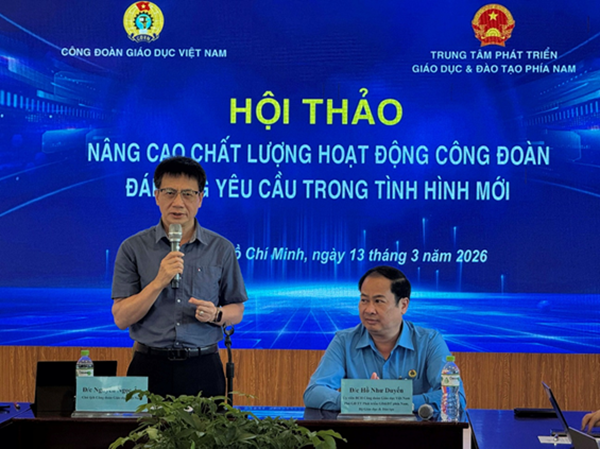 Ngày 13/3/2026, tại Khách sạn Hoa Phượng Đỏ (TP. Hồ Chí Minh), Công đoàn Giáo dục Việt Nam phối hợp với Trung tâm Phát triển Giáo dục và Đào tạo phía Nam tổ chức Hội thảo với chủ đề “Nâng cao chất lượng hoạt động công đoàn đáp ứng yêu cầu trong tình hình mới”.