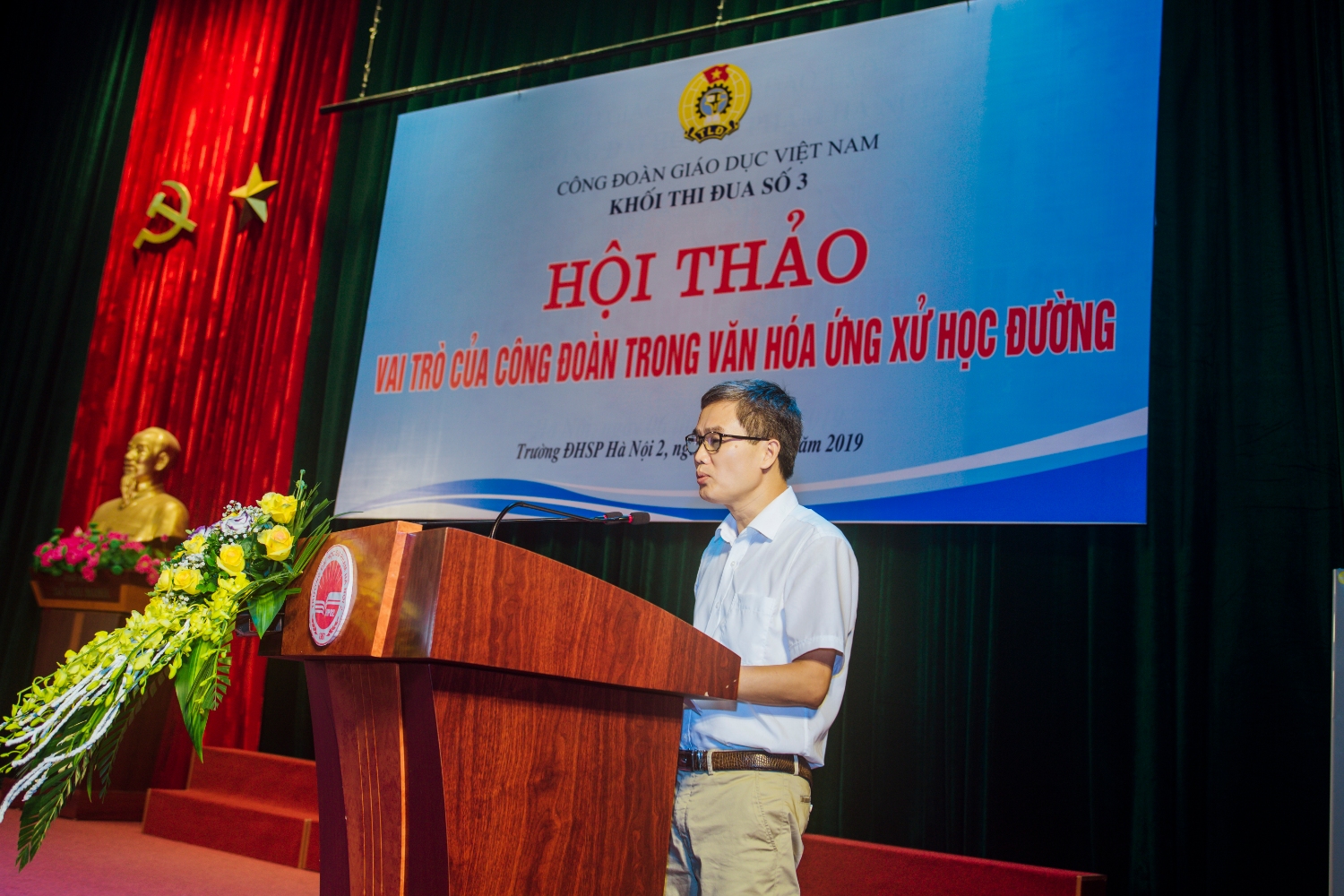 Được sự nhất trí, tạo điều kiện của Công đoàn Giáo dục Việt Nam, Đảng ủy Trường ĐHSP Hà Nội 2 và sự phối hợp của Ban Giám hiệu, các đơn vị trong trường, ngày 17 tháng 7 năm 2019, Công đoàn Trường Đại học Sư phạm Hà Nội 2 làm đầu mối thay mặt cho Khối thi đua số 3 tổ chức Hội thảo “Vai trò của công đoàn trong văn hóa ứng xử học đường”. Hội thảo là điểm nhấn quan trọng trong quá trình triển khai thực hiện Kế hoạch số 71/KH-CĐN ngày 20/3/2019 về việc Tổ chức các hoạt động kỷ niệm 90 năm thành lập Công đoàn Việt Nam (28/7/1929-28/7/2019) và 68 năm thành lập Công đoàn Giáo dục Việt Nam (22/7/1951-22/7/2019); Kế hoạch 103/KH-CĐN ngày 02/4/2019 của Công đoàn Giáo dục Việt Nam về “triển khai nâng cao năng lực ứng xử sư phạm, đạo đức nhà giáo, người lao động (NGNLĐ) đáp ứng yêu cầu nhiệm vụ trong tình hình mới” và hưởng ứng cuộc vận động thi đua “Mỗi thầy, cô giáo là tấm gương sáng về đạo đức, tự học và sáng tạo” được phát động trong toàn ngành Giáo dục.