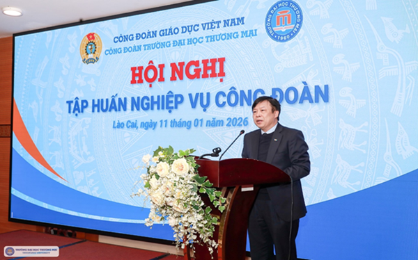 Thực hiện kế hoạch công tác năm học 2025 - 2026 về việc bồi dưỡng kiến thức nghiệp vụ cho cán bộ công đoàn cơ sở, ngày 11/01/2026, được sự đồng ý của Đảng ủy, Ban Giám hiệu, Công đoàn Trường Đại học Thương mại đã tổ chức Hội nghị tập huấn nghiệp vụ cán bộ công đoàn năm học 2025 - 2026 với chủ đề “Vai trò của Công đoàn trong phối hợp với chuyên môn để xây dựng môi trường làm việc hạnh phúc”.