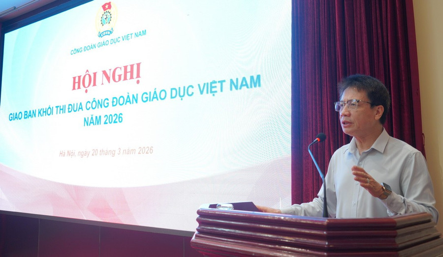 Ngày 20/3, Công đoàn Giáo dục Việt Nam tổ chức Hội nghị giao ban các khối thi đua năm 2026 nhằm tổng kết hoạt động năm 2025 và triển khai phương hướng, nhiệm vụ năm 2026.