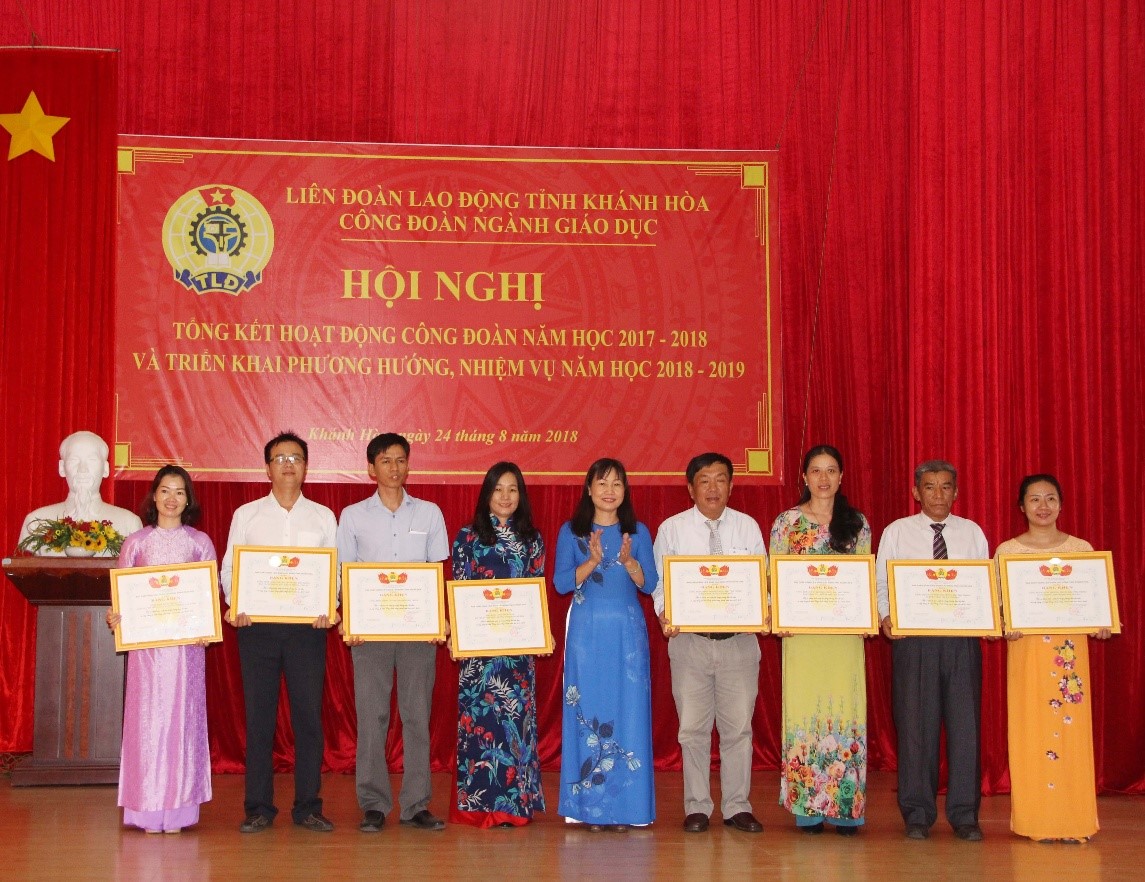 Tại hội nghị, đồng chí Trương Minh Hà, Chủ tịch Công đoàn ngành đã báo cáo đánh giá tổng kết hoạt động công đoàn năm học 2017 - 2018 và triển khai phương hướng, nhiệm vụ năm học 2018 - 2019. Trong năm học qua, Công đoàn ngành Giáo dục Khánh Hòa đã hoàn thành xuất sắc nhiệm vụ công tác: Đã tổ chức thành công Đại hội CĐN khóa XIII, nhiệm kỳ 2018-2023 và chỉ đạo, hướng dẫn các CĐCS tổ chức thành công Đại hội CĐCS nhiệm kỳ 2017-2022. Thực hiện tốt công tác tham mưu với chính quyền giải quyết đầy đủ, kịp thời các chế độ, chính sách đối với cán bộ, nhà giáo, người lao động; triển khai có hiệu quả các chương trình hoạt động của Công đoàn cấp trên theo đúng kế hoạch; thực hiện tốt công tác xã hội…Kết quả 39/40 Công đoàn cơ sở trực thuộc được đánh giá, xếp loại vững mạnh, trong đó có 07 CĐCS đạt “Vững mạnh xuất sắc”. Nhân dịp này, Liên đoàn Lao động tỉnh Khánh Hòa tặng Bằng khen cho 09 tập thể, 10 cá nhân; Công đoàn Giáo dục Việt Nam tặng Bằng khen cho 01 tập thể, 04 cá nhân; Công đoàn ngành tặng Cờ thi đua xuất sắc cho 03 đơn vị dẫn đầu Khối, tặng Giấy khen cho 12 tập thể và 84 cá nhân có thành tích xuất sắc trong hoạt động công đoàn năm học 2017 - 2018./.