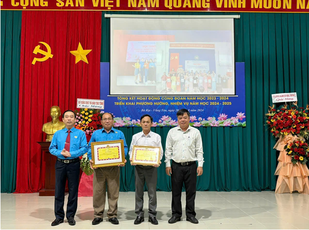 Ngày 28/8/2024, tại Trường THPT Châu Thành, CĐGD tỉnh Bà Rịa- Vũng Tàu tổ chức Hội nghị Tổng kết hoạt động công đoàn năm học 2023- 2024. Tham dự hội nghị có ông Lê Văn Hòa- Tỉnh ủy viên, Ủy viên BCH Tổng LĐLĐ Việt Nam, Chủ tịch LĐLĐ tỉnh Bà Rịa- Vũng Tàu; ông NguyễnVăn Ba - Phó Bí thư Đảng ủy, Phó Giám đốc Sở Giáo dục và Đào tạo; bà Nguyễn Minh Thu Thủy, Chủ tịch Công đoàn Giáo dục tỉnh; đại diện lãnh đạo các LĐLĐ huyện, thành phố, thị xã, công đoàn ngành và tương đương, các phòng chuyên môn thuộc sở GD&ĐT tỉnh; các đồng chí ủy viên Ban Thường vụ, Ban Chấp hành, Ủy ban Kiểm tra, Ban Nữ công Công đoàn Giáo dục tỉnh; chủ tịch công đoàn cơ sở các đơn vị trực thuộc, đại diện các tập thể và cá nhận được khen thưởng năm học 2023- 2024.