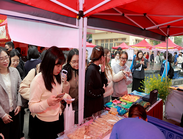 Đoàn viên, sinh viên mua sắm Tết tại Hội chợ Xuân TMU