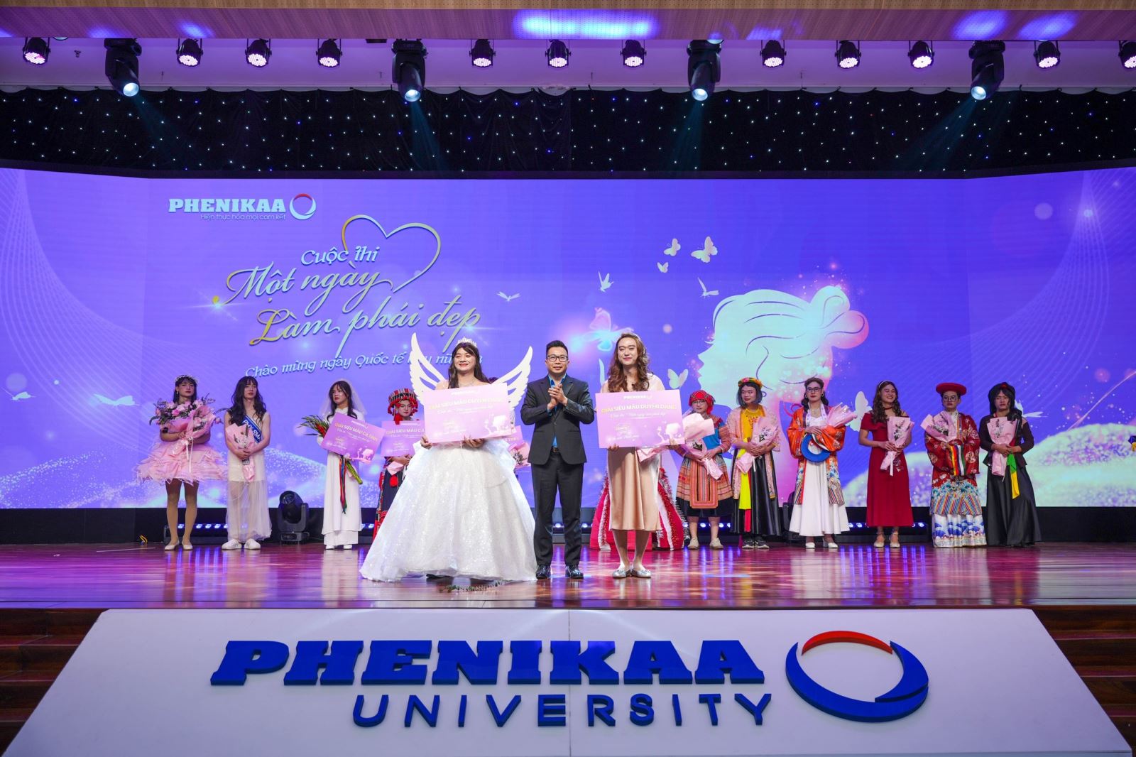 Tại buổi Lễ, Ban Tổ chức đã trao giải cuộc thi “Duyên dáng Áo dài Phenikaa”, nơi vẻ đẹp duyên dáng và tinh thần tự tin của phụ nữ Phenikaa được tôn vinh qua những tà áo dài truyền thống thanh lịch. Đây là điểm nhấn của hoạt động hưởng ứng Tuần lễ áo dài dành cho nữ CBGVNV toàn Đại học.