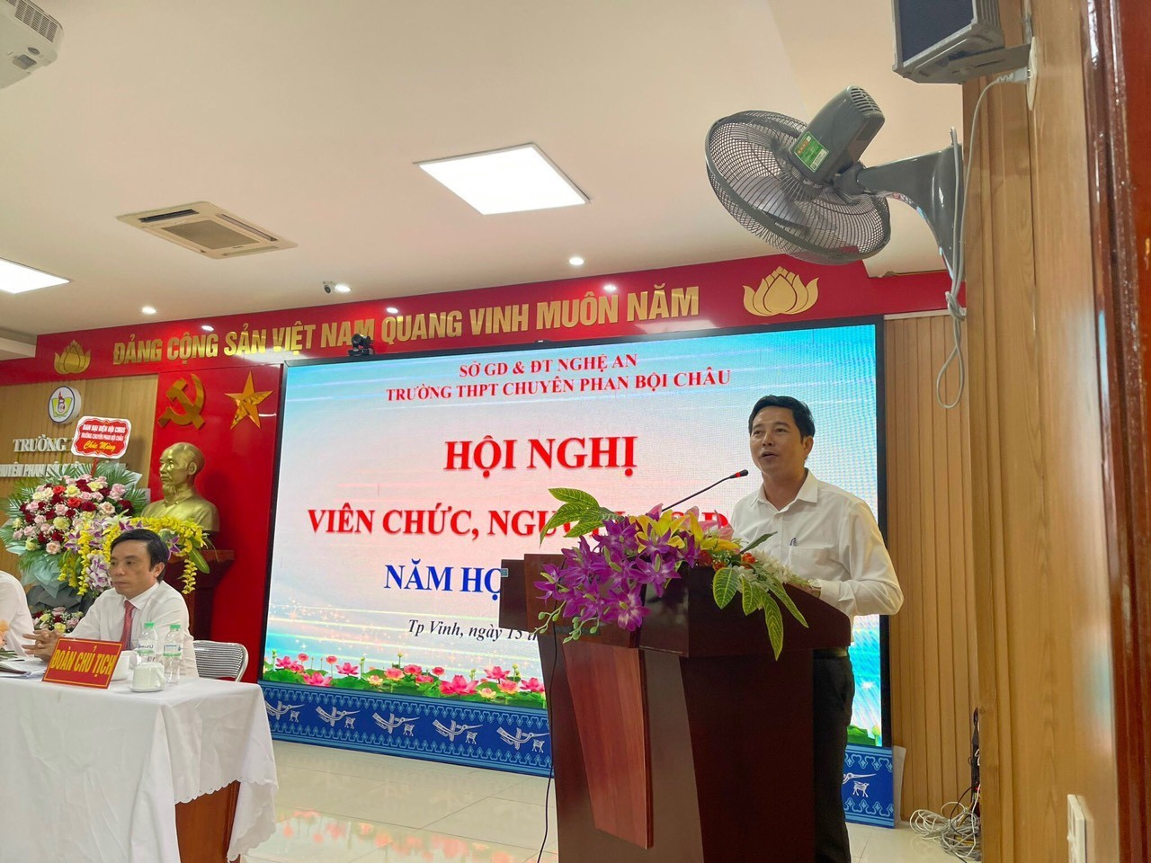 Trong 2 ngày 15,16/9/2023, đoàn Công tác của Sở và Công đoàn Giáo dục Nghệ An, dẫn đầu là đồng chí Đặng Văn Hải - UVBTV LĐLĐ tỉnh, Chủ tịch Công đoàn Ngành đã đến dự và chỉ đạo Hội nghị viên chức, người lao động tại trường THPT chuyên Phan Bội Châu và trường THPT Quỳnh Lưu 2.