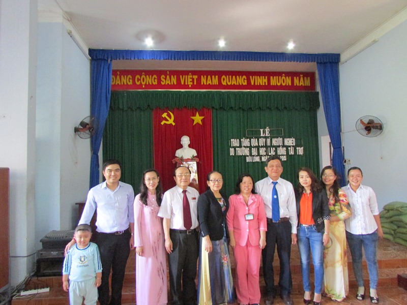 Với truyền thống tương thân tương ái, lá lành đùm lá rách, động viên, chia sẻ, chăm lo cho người nghèo có hoàn cảnh khó khăn,giúp họ có điều kiện đón Tết nguyên đán Ất Mùi 2015, ngày 9/2/2015 vừa qua BCH Công đoàn trường Đại học Lạc Hồng đã phối hợp với Ủy ban Mặt trận Tổ quốc phường Bửu Long, thành phố Biên Hòa, tỉnh Đồng Nai trao tặng 150 phần quà cho các hộ nghèo trên địa bàn phường, tổng giá trị các phần quà là 30.000.000 đồng do toàn thể Công đoàn viên trong trường cùng chung tay đóng góp. Món quà tuy nhỏ nhưng chứa đựng ý nghĩa nhân văn cao cả của tập thể sư phạm nhà trường hướng tới những hoàn cảnh khó khăn cần sự giúp đỡ. Và đây cũng là một hoạt động thiết thực diễn ra thường xuyên tại trường Đại học Lạc Hồng.
