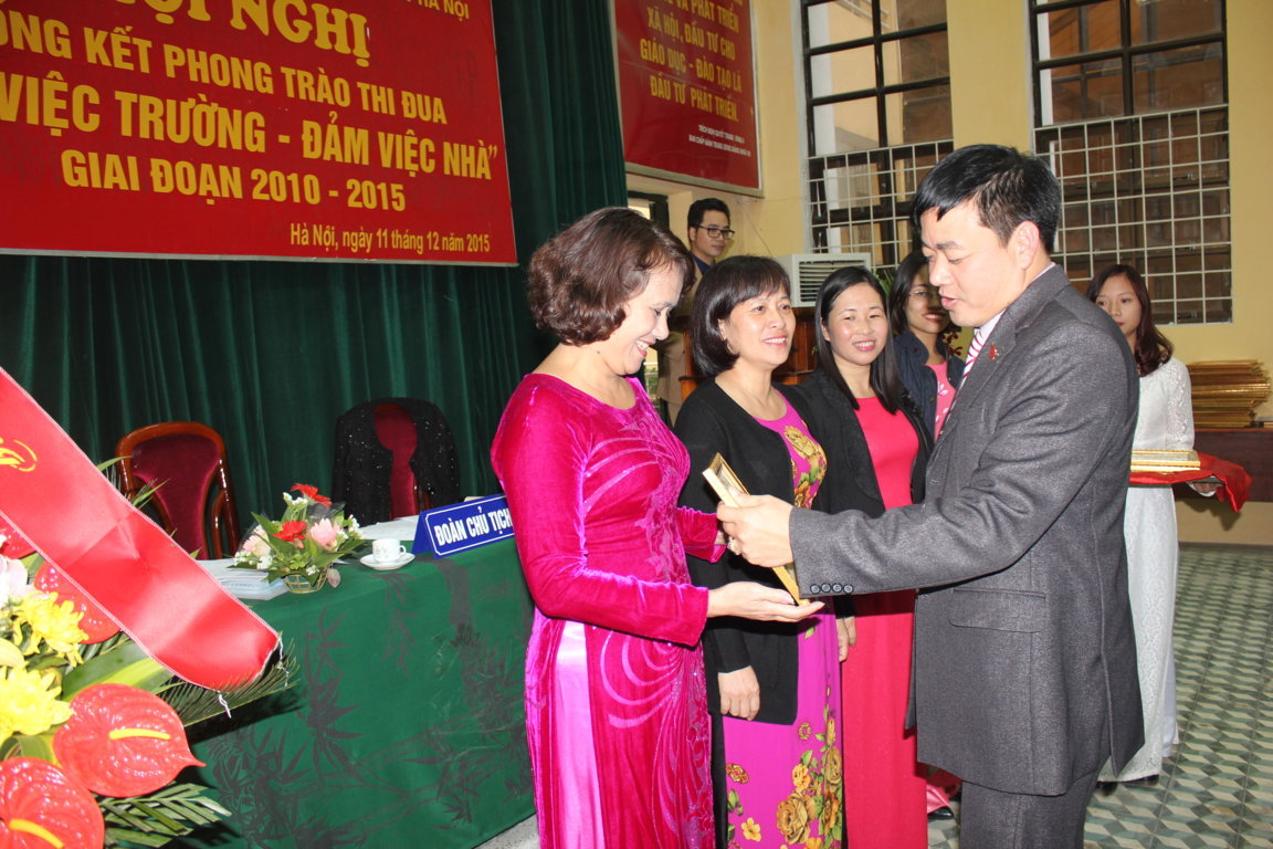 Phát biểu tại Hội nghị TS. Phạm Văn Thanh- Phó Chủ tịch Công đoàn Giáo dục Việt Nam đã ghi nhận và biểu dương những nỗ lực của phong trào “Giỏi việc trường-Đảm việc nhà” giai đoạn 2010- 2015 của nhà trường nói chung và thành tích của nữ cán bộ, nhà giáo nói riêng, đồng thời trao danh hiệu: Phụ nữ “Giỏi việc trường-Đảm việc nhà” xuất sắc cho 04 nữ cán bộ, nhà giáo.