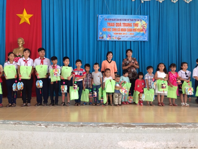 Thực hiện Kế hoạch của Công đoàn Giáo dục thành phố Cần Thơ về việc phân bổ quỹ quyên góp vận động “Tấm lòng vàng Công đoàn Cần Thơ” và “Tháng hành động vì trẻ em” năm 2017, vào lúc 15g00 ngày 30/9/2017 (tức ngày 11/8 năm Đinh Dậu), đoàn công tác do do đồng chí Bùi Thị Phương, Phó Chủ tịch Công đoàn ngành Giáo dục và Đào tạo thành phố Cần Thơ làm Trưởng đoàn cùng các vị khách mời: đồng chí Nguyễn Thị Diệu Hiền, Trưởng ban Nữ công Liên đoàn Lao động TP Cần Thơ và các đồng chí công tác trong Ban Nữ công Liên đoàn Lao động thành phố đã đến huyện Vĩnh Thạnh để trao các phần quà Trung thu cho con các công chức, viên chức, người lao động (CCVCLĐ) ngành Giáo dục huyện Vĩnh Thạnh - một huyện xa nhất của thành phố Cần Thơ (mỗi phần quà trị giá 200.000 đồng, với tổng số tiền là 20.000.000 đồng).