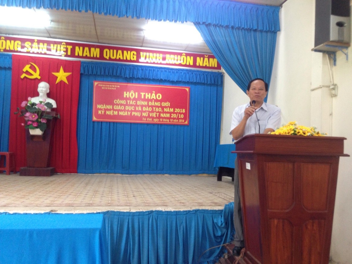 Vào Ngày 19/10/2018, tại Hội trường Sở Giáo dục-Đào tạo, Công đoàn ngành Giáo dục và Ban Vì sự tiến bộ phụ nữ ngành Giáo dục Trà Vinh đã phối hợp tổ chức Hội thảo  công tác bình đẳng giới và vì sự tiến bộ phụ nữ cho 90 cán bộ quản lý là Trưởng phòng chức năng chuyên môn nghiệp vụ Sở Giáo dục và Đào tạo, Trưởng phòng Giáo dục và Đào tạo các huyện, thị xã và thành phố trong tỉnh, Lãnh đạo các Trường và đơn vị trực thuộc Sở và Trưởng ban nữ công các Công đoàn cơ sở trực thuộc. Đến dự Hội thảo có Bà Mai Thanh Trúc-Thư ký Thường trực Ban Vì sự tiến bộ Phụ nữ tỉnh; Ông Nguyễn Thành Nguyện-Tỉnh ủy viên, Bí thư Đảng ủy, Giám đốc Sở Giáo dục và Đào tạo, Bà Nguyễn Thị Bạch Vân-Trưởng Ban Vì sự tiến bộ phụ nữ, Phó Giám đốc Sở Giáo dục và Đào tạo; Bà Bùi Thị Rảnh-Chủ tịch Công đoàn ngành Giáo dục.