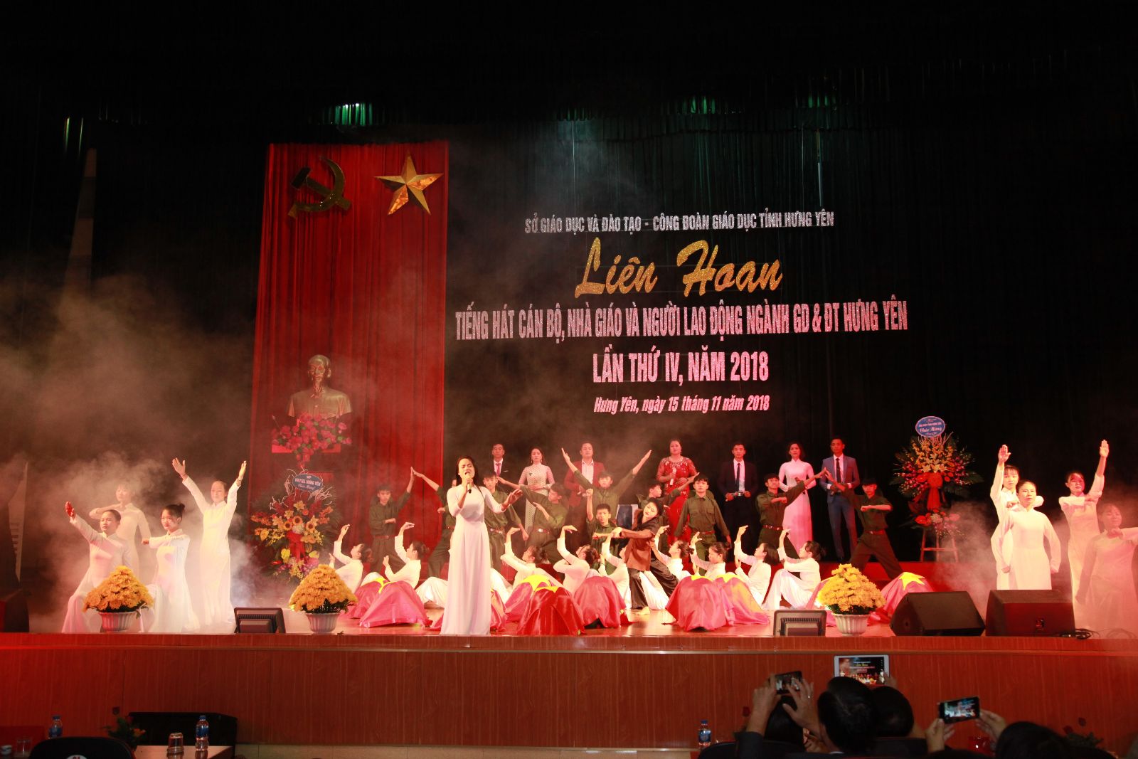 Thực hiện Kế hoạch liên tịch số 1665/KHLT-SGDĐT-CĐN ngày 01/10/2018 của Sở Giáo dục & Đào tạo và Công đoàn Ngành về việc tổ chức Liên hoan tiếng hát cán bộ, nhà giáo, người lao động ngành Giáo dục và Đào tạo Hưng Yên lần thứ IV năm 2018, ngày 15/11/2018, Liên hoan tiếng hát CBNGNLĐ cấp Ngành được tổ chức long trọng tại Nhà Văn hóa Lao động tỉnh.