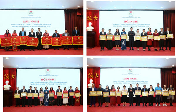 Hội nghị cũng là dịp biểu dương những tập thể và cá nhân có thành tích xuất sắc trong hoạt động công đoàn. Thay mặt Ban chấp hành Tổng LĐLĐ Việt Nam, Phó Chủ tịch Phan Văn Anh đã trao tặng Cờ thi đua cho 04 tập thể và Bằng khen cho 06 tập thể, 27 cá nhân tiêu biểu. CĐGD Việt Nam đã biểu dương, trao tặng Cờ thi đua cho 16 Tập thể và Bằng khen cho 98 tập thể, 241 cá nhân.