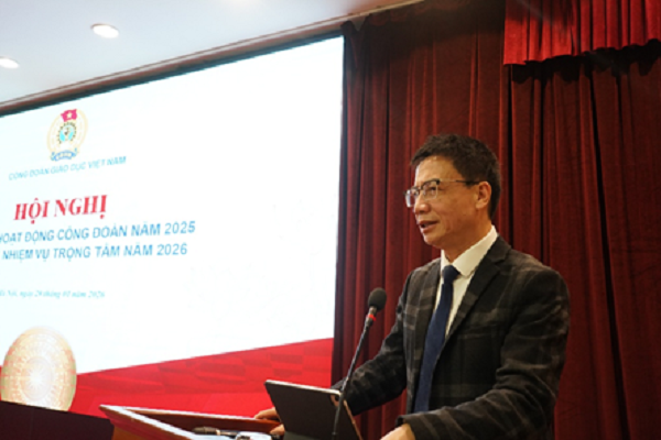 Ngày 29/01/2026 tại Hà Nội, CĐGD Việt Nam đã tổ chức Hội nghị Tổng kết hoạt động công đoàn năm 2025, triển khai nhiệm vụ trọng tâm năm 2026. Chủ trì Hội nghị có đồng chí Nguyễn Ngọc Ân - Uỷ viên Ban Chấp hành Đảng bộ Bộ Giáo dục và Đào tạo (GD&ĐT), Ủy viên Đoàn Chủ tịch Tổng Liên đoàn Lao động (LĐLĐ) Việt Nam, Chủ tịch CĐGD Việt Nam. CĐGD Việt Nam được tiếp đón đồng chí Phan Văn Anh, Phó Chủ tịch Tổng LĐLĐ Việt Nam. Hội nghị có sự tham gia của các đồng chí lãnh đạo CĐGD Việt Nam; các đồng chí Chủ tịch/Phó Chủ tịch, cán bộ văn phòng đến từ Công đoàn Đại học Quốc gia, Đại học vùng, các đại học, trường đại học, trường cao đẳng sư phạm và các đơn vị trực thuộc CĐGD Việt Nam.