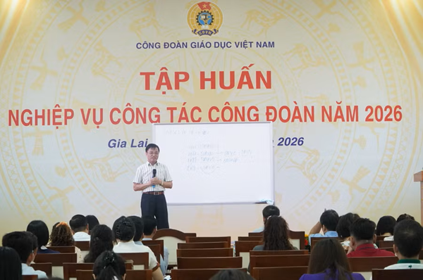 GD&TĐ - Tại buổi tập huấn năm 2026, Công đoàn Giáo dục Việt Nam yêu cầu đổi mới hoạt động, chủ động thi đua từ sớm, bảo đảm quyền lợi người lao động.